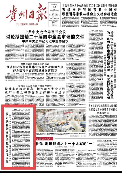貴州日報:校企聯合研發制造超高強度鋼絲每平方毫米可承受零點二噸重量,撐起世界第一高橋